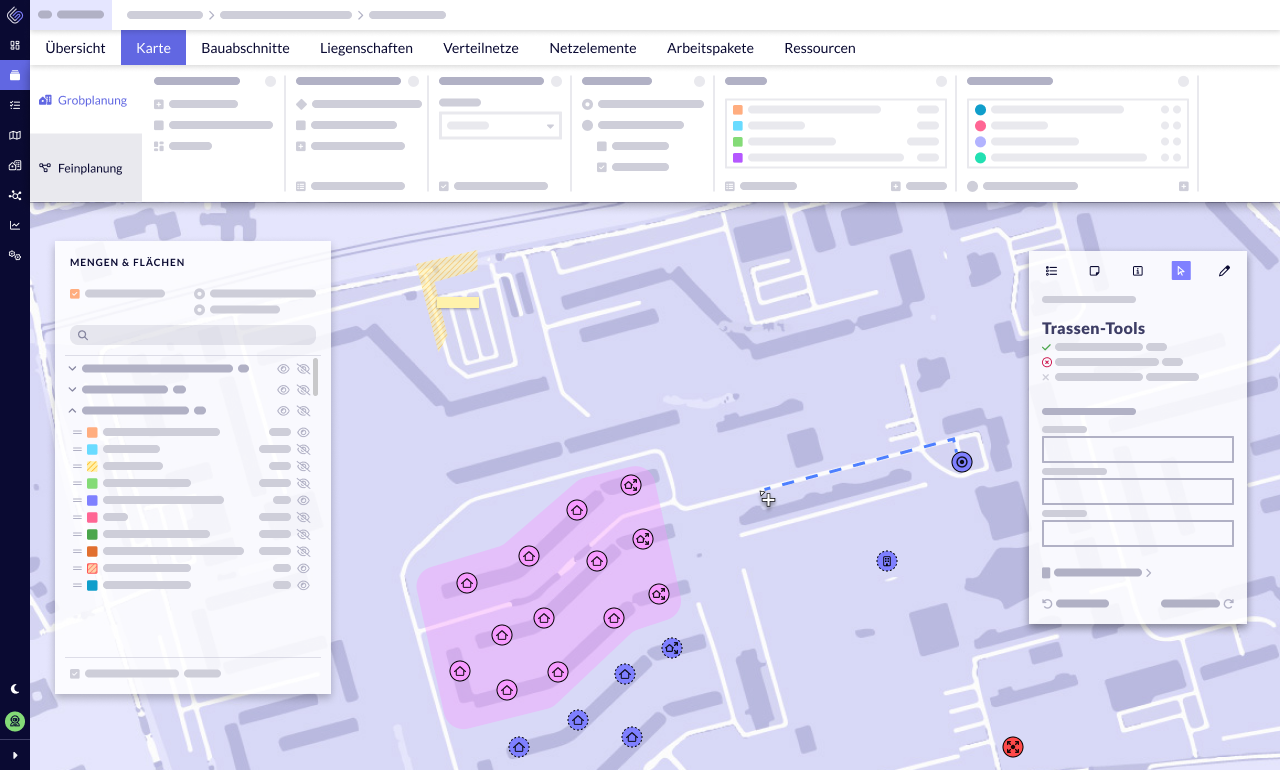 Egal ob Netzbetreiber, Generalunternehmer oder Ausbauunternehmen– eine spezialisierte NE4-Software schafft Transparenz, reduziert Abstimmungsaufwand und sorgt für eine saubere Dokumentation im gesamten Inhausausbau.